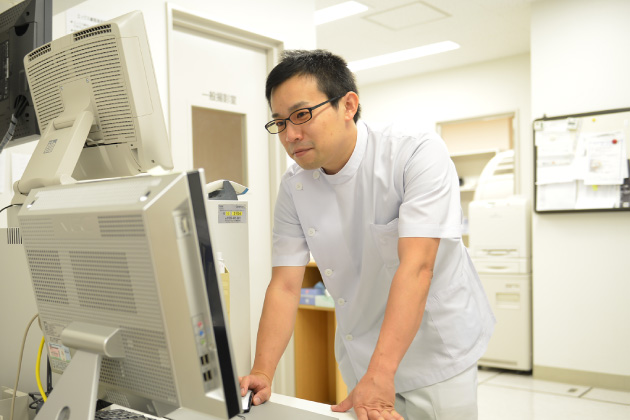 新卒者向けでは、当院は電子カルテ、PACSを採用し電子化されていますので、まずは電子カルテやPACS、受付業務などを覚えてもらい、実務業務としては単純CT撮影や一般撮影などから始め内科領域の胸腹部や整形領域など順次覚えていってもらうといったスタイルです。なお、ある程度1人でできるようになるまでは、複数の先輩技師が必ず周囲に控えていますので、安心してもらえるかと思います。