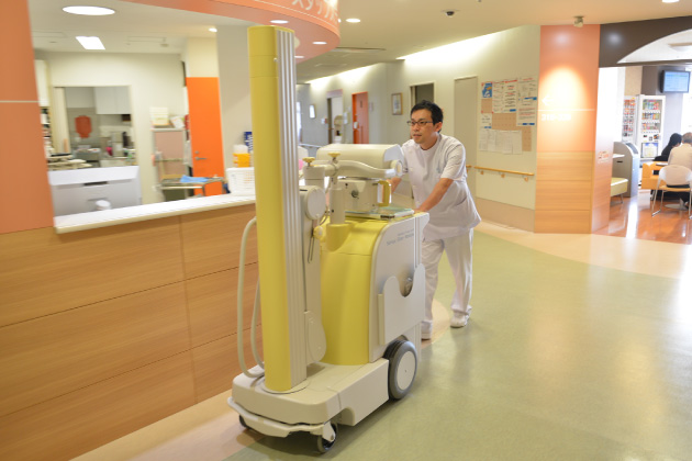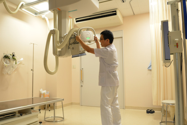 病院における放射線部門は無くてはならない必須の部門です。X線撮影には必ず目的があり、目的にあった的確な写真がとれるかどうかで診断を大きく左右しますので、常に責任と緊張をもって業務に励んでいます。