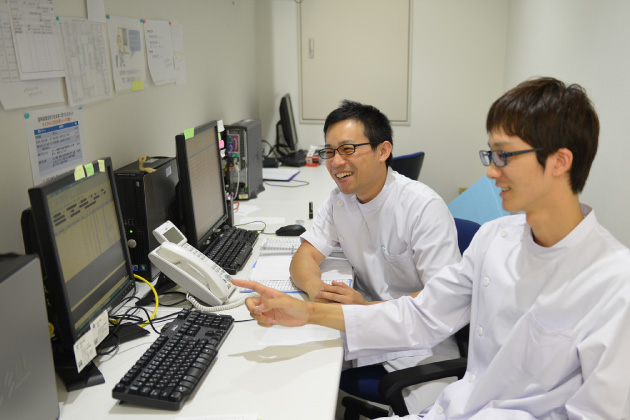 業務を分担していませんので、幅広くいろんな検査を覚えられるメリットがあるのと同時に、複数の技師がいますので、教えてもらえない不安や休みがとれないといったこともなく、バランスのとれた職場です。