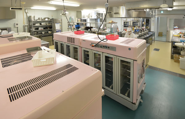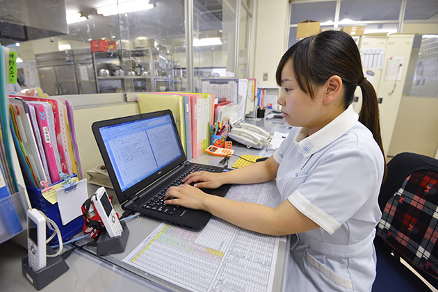 チーム医療の一員として、患者様の栄養状態を確認し、栄養状態の維持・改善を目標とした栄養管理を行います。また患者様の疾患、摂食嚥下、摂取状況に応じた食事内容の選択・提案を行い、QOLの向上や栄養障害を予防しています。