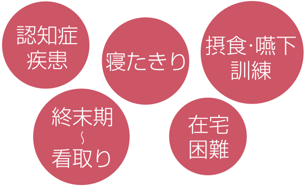 当院は、病状は安定しているが、慢性の病気で長い期間療養しなければならない、リハビリが必要、寝たきり、老人性認知症などにより在宅生活が難しいなど、そういった方のための入院施設です。また、摂食・嚥下機能の低下により食事の経口摂取が困難となっても、 自分の口から食べる楽しみを得られるよう、多職種による支援にも力を入れています。
